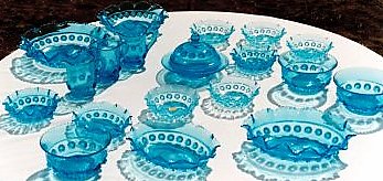 Any piece of glass with this trademark can be accurately dated to the period 1880 to 1891. In 1889 Davidson's introduced one of their most popular and successful lines, a colouring which they called "Pearline". It was only made in two colours, blue and lemon yellow, each with a white edge. Pearline glass was so successful that Davidson's introduced a new suite of designs made in "pearline" almost every year until 1903, and continued production of pearline until the outbreak of the First World War (1914). ![]() Davidson's pearline glass is virtually always marked with a number or (on very early pieces) the word "Patent". The number is the British registration number of that particular pattern, and identifies the manufacturer and the date of registration. The exceptions to this rule are the small items which Davidson's marketed as "novelty" pieces, and this quilted pattern (right), which does not have a number but does appear in Davidson's advertisements of 1893. American glass collectors have named this design "Quilted pillow sham" (Heacock).